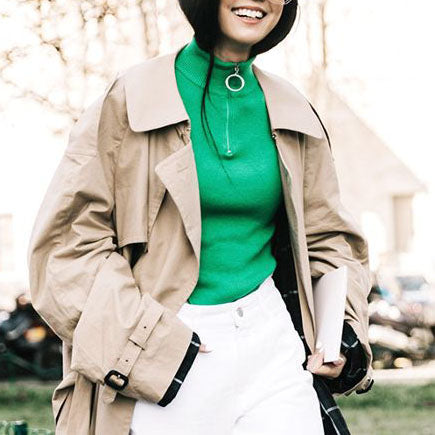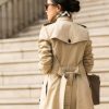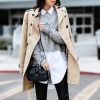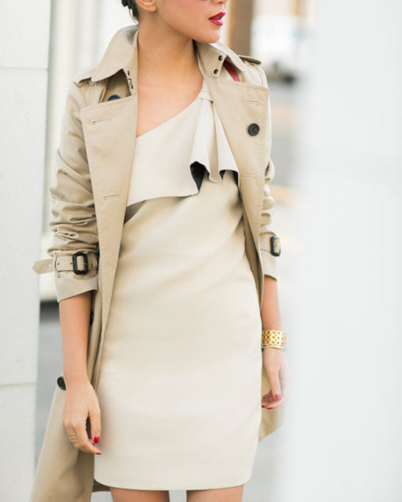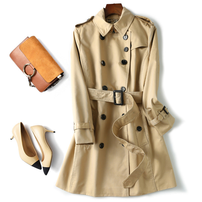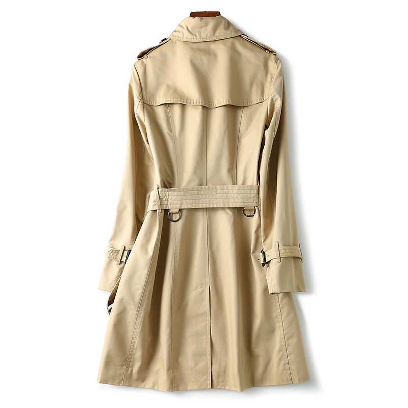 Classic Double Breasted Turtle Neck Women’s Beige Trench Coat