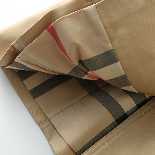 This gorgeous trench coat features a popular belted waist tie slimming style, retro checked lined inside and under the collar. Wear it belted to accentuate the softly flared silhouette. Alterations can be made using our in-store service C please see FAQs for details. This waterproof khaki trench coat is for any body type, for any underneath you like, for open front & button up wearing, and for outdoor, parties, or official events.