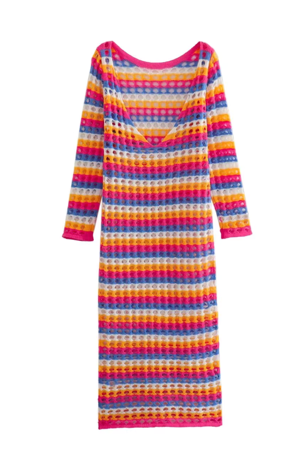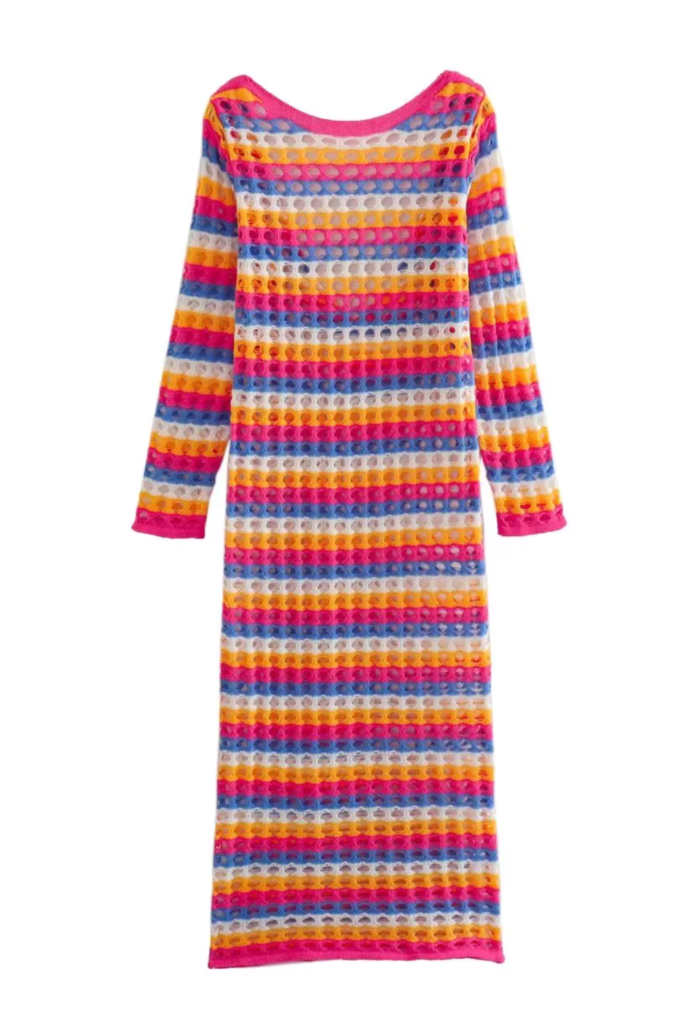 Heavenlyshawl Crochet Stripe Long-Sleeved Dress