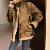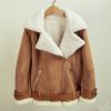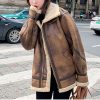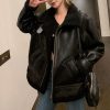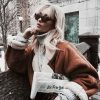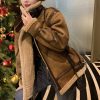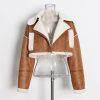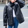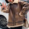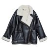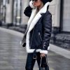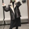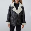 Design: Turn-down Turtle Neck White Fur Collars, Full Lined Shearling, Full Zipper, Long Sleeves, Moto & Bike style, Oversized and Bomber
