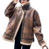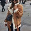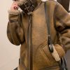 This thick fur lined faux sheepskin leather bomber coat features plush & fuzzy full shearling, metal zip up closure, 2 pockets, Belted durable hem and Long sleeves. This leather jacket with shearling is for any body type, any height, for a lots of layers underneath, and for any chilly cold weather