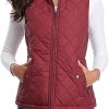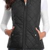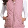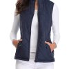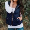Design: Zipup, Plaid, Sleeveless, Stand Collar, Quited, Slimming and Front Pockets.