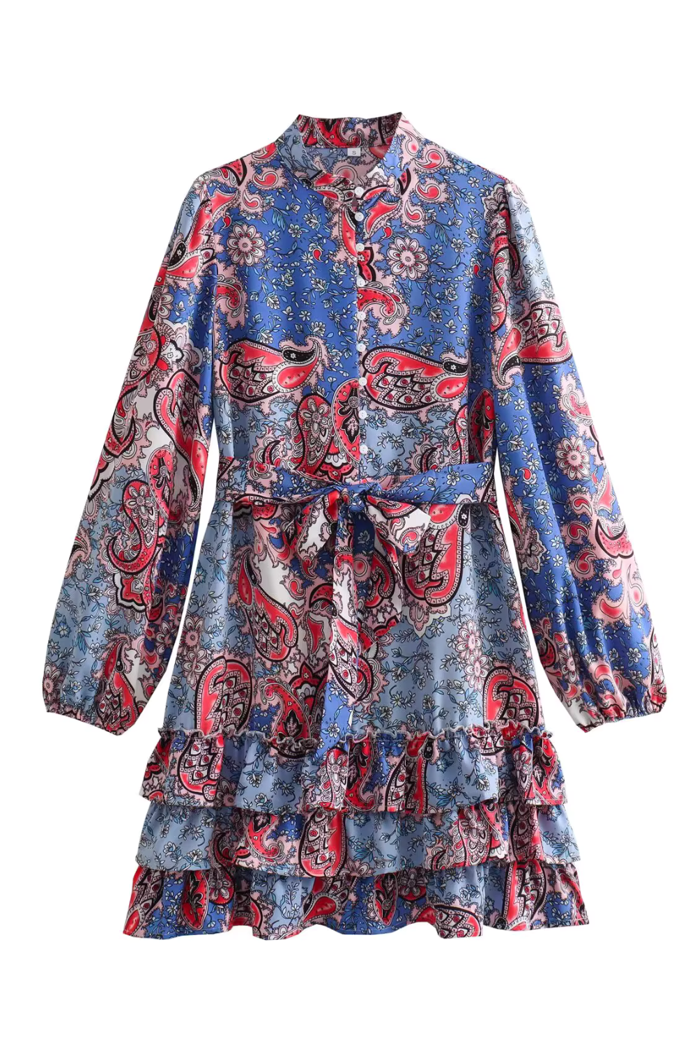 Goodnight Heavenlyshawl ‘Sapphire’ Paisley Pattern Ruffled Layered Dress