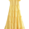 Goodnight Heavenlyshawl ‘Sapphire’ Square-Neck Ruched Tiered Dress