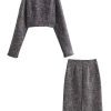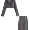 Goodnight Heavenlyshawl ‘Sapphire’ Tweed Cropped Suit Blazer & Slit Skirt Set