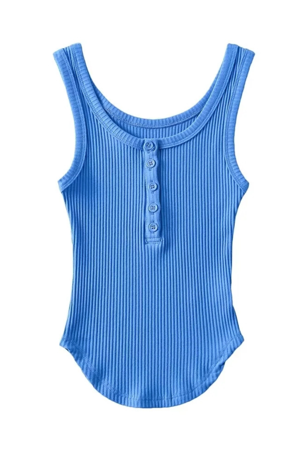 Goodnight Heavenlyshawl ‘Sapphire’ U-shaped Hem Knit Ribbed Top (8 Colors)