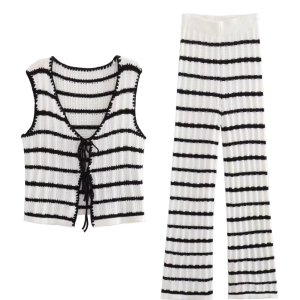Sapphire’ Striped Crochet Sleeveless Top & Straight Trouser